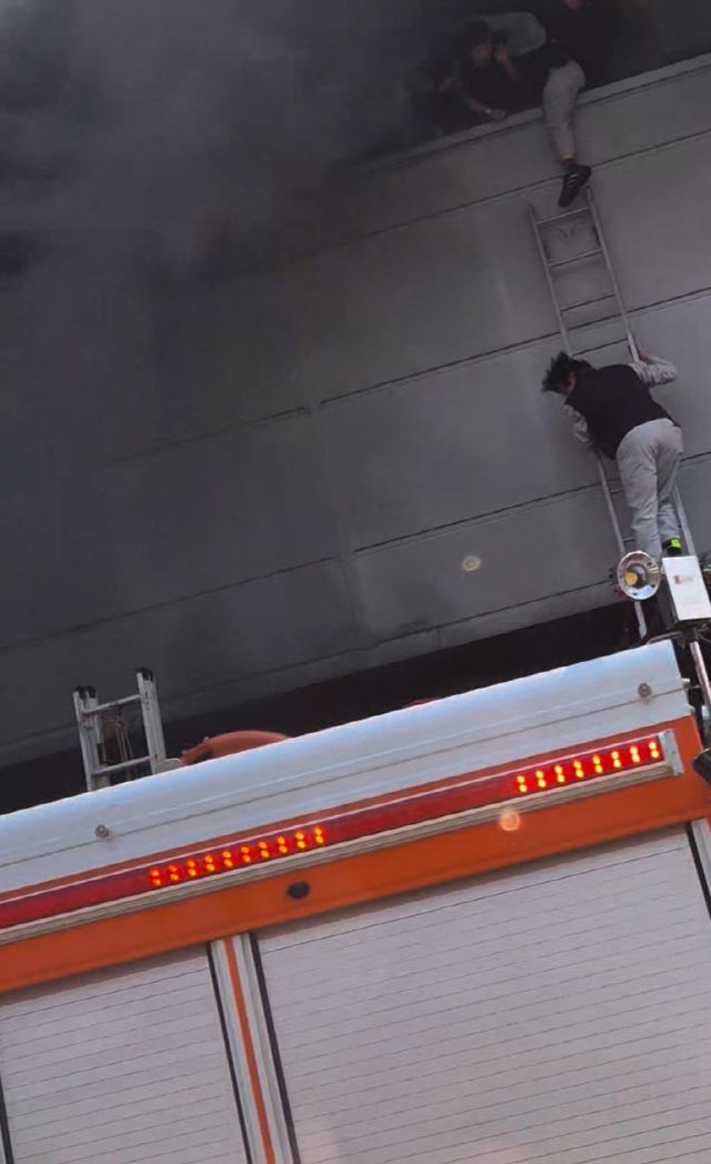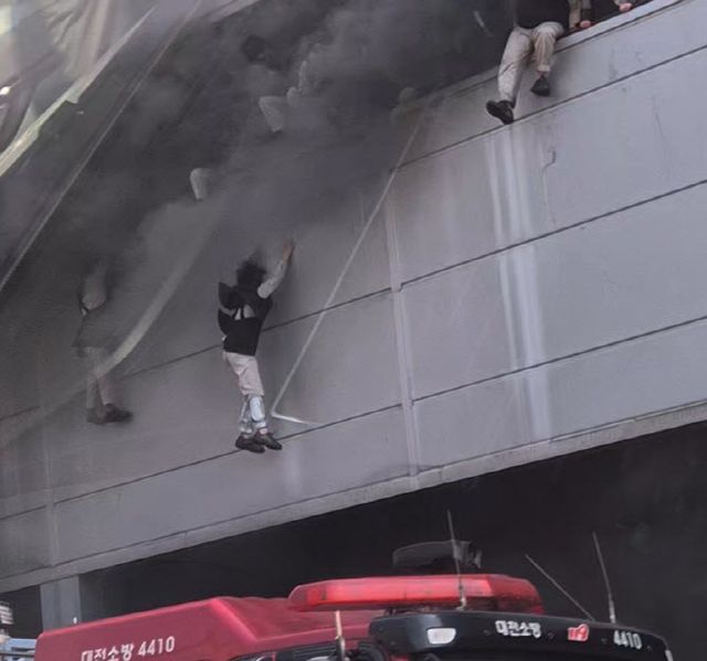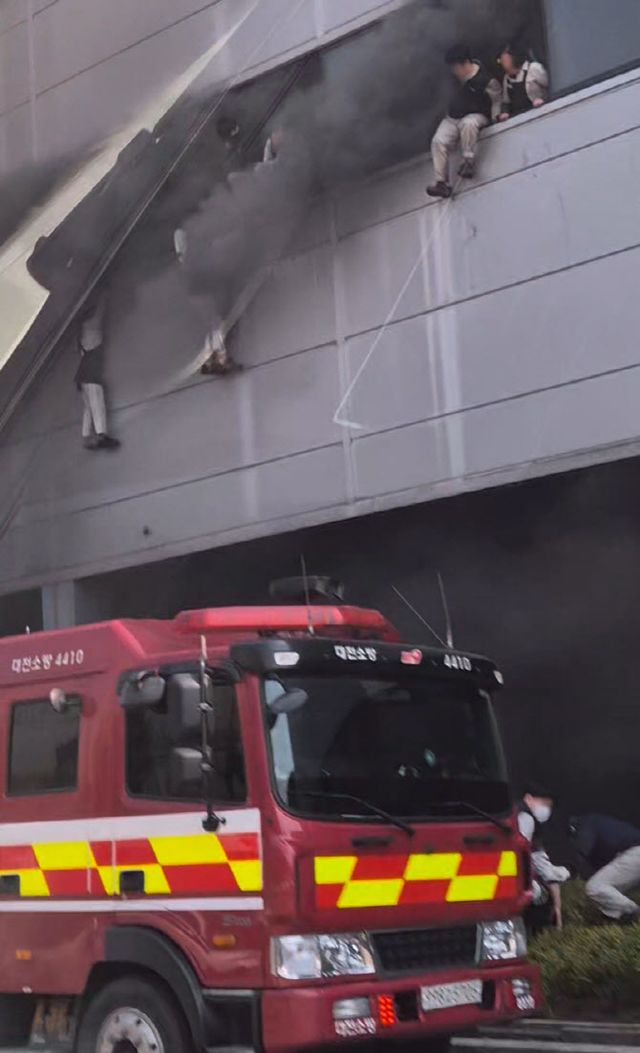 검은 연기가 끊임없이 뿜어져 나오는 2층 창가에 직원 여러 명이 몰려들었고, 창가에 걸터앉거나 소방차 사다리를 타고 대피하는 모습도 보였다. 창틀에 매달려 있다가 버티지 못하고 뛰어내리는 사람도 있었다.