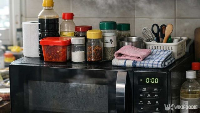 주방 공간이 좁다 보니 전자레인지 위를 수납 공간처럼 사용하는 경우가 많다. 작은 조리 도구, 행주, 양념통 등을 올려두는 것이 일반적이다. 그런데 전자레인지 상단에는 작동 중 발생하는 열을 밖으로 내보내는 환기구가 있다. 이 환기구가 물건에 막히면 열이 제대로 빠져나가지 못하고 내부 온도가 계속 올라간다.