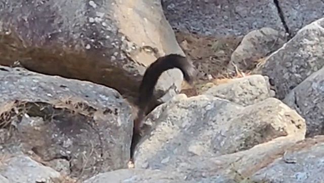 영상에는 황갈색 몸통에 검은 꼬리를 가진 담비 한 마리가 계곡 바위 사이를 민첩하게 뛰어다니는 모습이 담겼다.