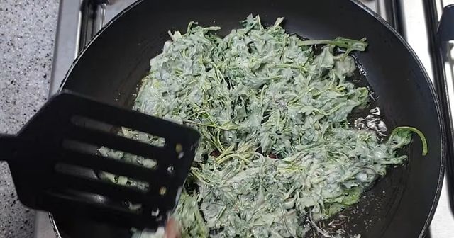 팬에 기름을 넉넉히 두르고 중불에서 예열한 뒤 반죽에 쑥을 넣어 가볍게 섞는다. 한 젓가락씩 떠서 팬에 올리고 얇게 펴준다. 이때 너무 두껍게 올리면 속까지 익는 데 시간이 오래 걸리고 바삭함이 줄어들 수 있다.