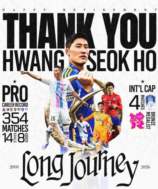 황석호는 "잘했던 기억보다는 부족했던 순간들이 더 많이 떠오르지만, 그래도 끝까지 포기하지 않고 버틸 수 있었던 것은 팀 동료 선후배들과 여러분 덕분이었다"면서 "경기장에서 제 이름을 불러주던 목소리와 힘들 때 더 크게 들리던 응원 그 하나하나가 나를 다시 뛰게 만들었다. 각 팀에서 만난 팬분들 글기ㅗ 함께했던 모든 분들께 진심으로 감사하다"며 감사 인사를 전했다.