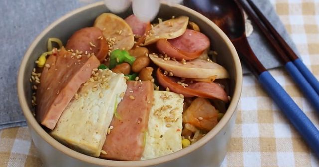 완성된 스팸 밥솥 한 끼는 별도의 반찬 없이도 충분한 한 끼 식사가 된다. 스팸의 짭조름한 맛과 두부의 부드러움, 콩나물의 아삭함이 어우러져 식감과 맛의 균형이 잘 맞는다. 특히 밥 전체에 스며든 스팸의 풍미는 따로 양념을 많이 하지 않아도 깊은 맛을 느끼게 한다.
