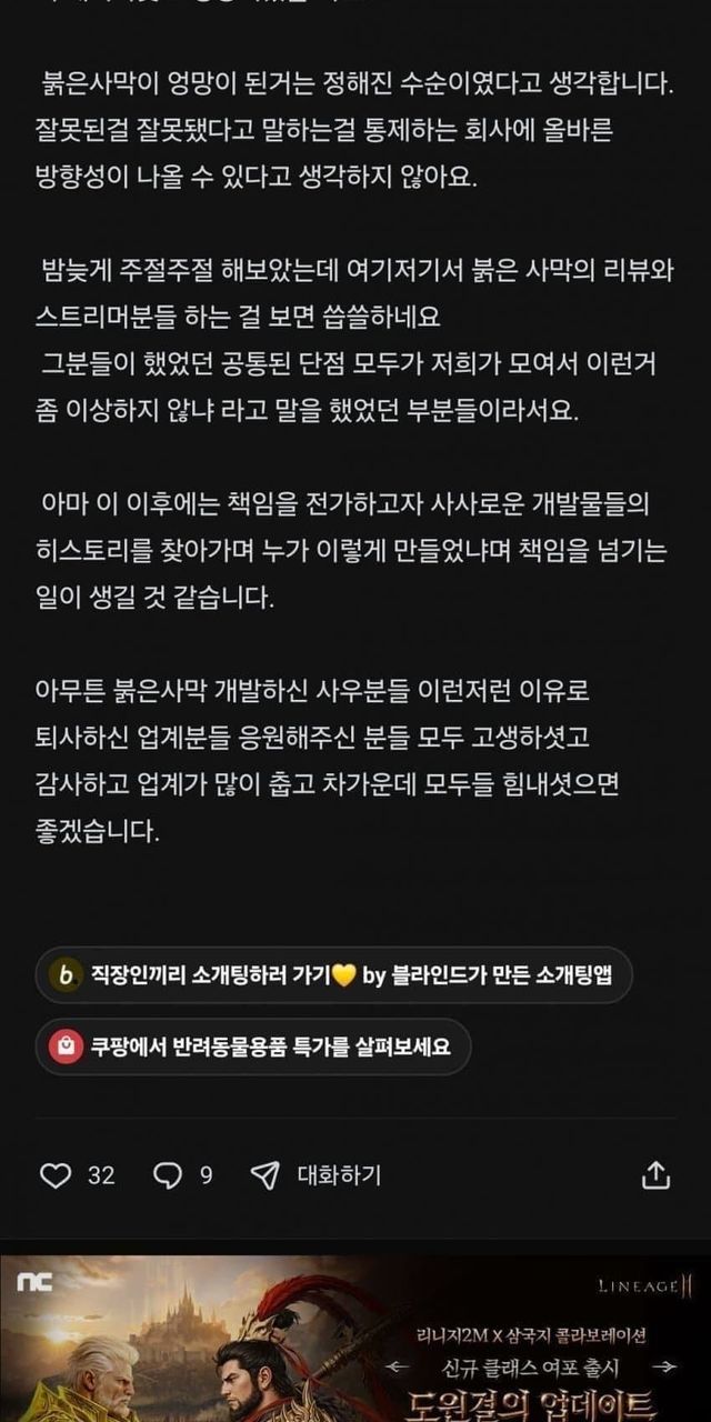 드디어 올라온 붉은사막 블라인드