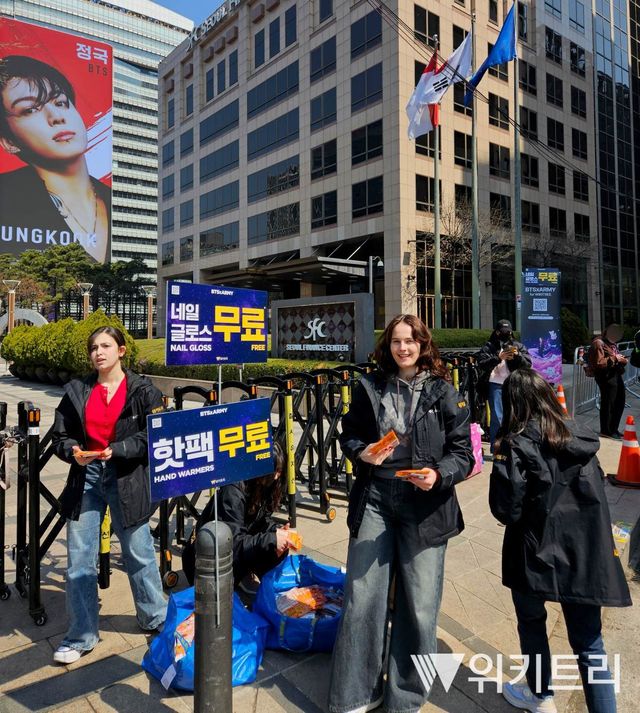 21일, 전 세계의 이목이 집중된 방탄소년단(BTS)의 2026년 컴백 현장이 뜨거운 열기로 가득 찼다. 대규모 인파가 운집하며 축제 분위기가 고조되는 가운데 현장을 찾은 팬들의 안전과 편의를 돕기 위한 위키트리의 공익 활동이 펼쳐져 눈길을 끌고 있다.