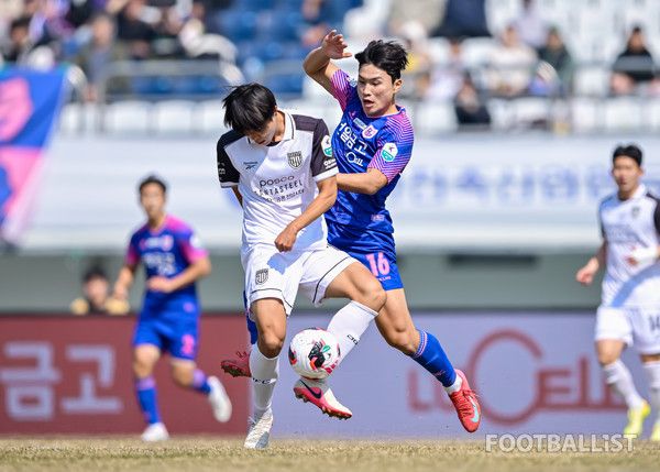 전반 25분 발디비아가 오른쪽에서 올린 코너킥을 강신명이 헤더로 연결한 건 김민승이 안전하게 잡아냈다.