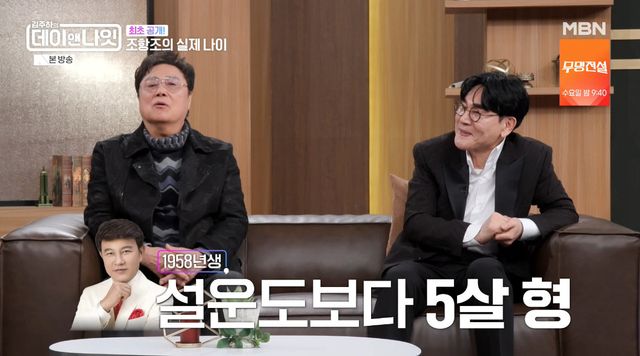 59년생으로 알려진 조항조는 "제 원래 나이는 53년생이다. '데이앤나잇' 대단하다. 제가 지금까지 말 안 해왔던 저의 나이가 공개되는 순간이다"라고 밝혔다.