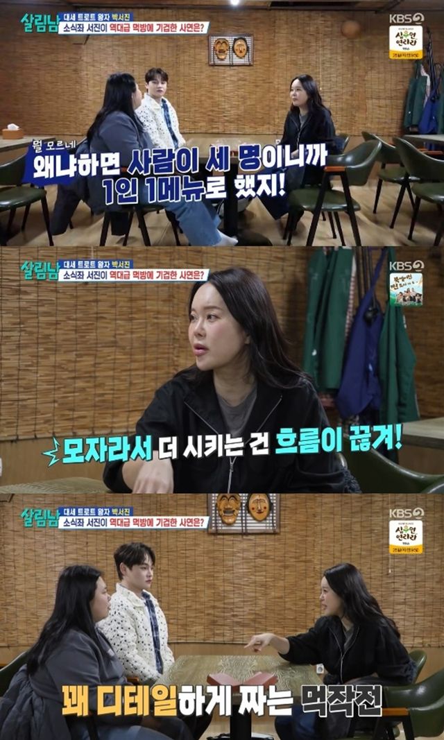 백지영은 박효정 편을 들면서 3가지 메뉴를 어떻게 먹을지 전략을 짰다.