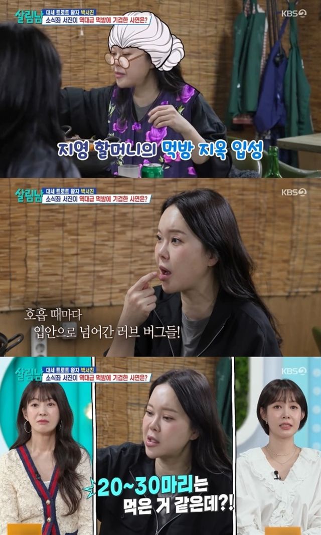 21일 방송된 KBS 2TV '살림하는 남자들 시즌2'에서는 백지영이 박효정과 먹자매를 이루는 모습이 전파를 탔다.