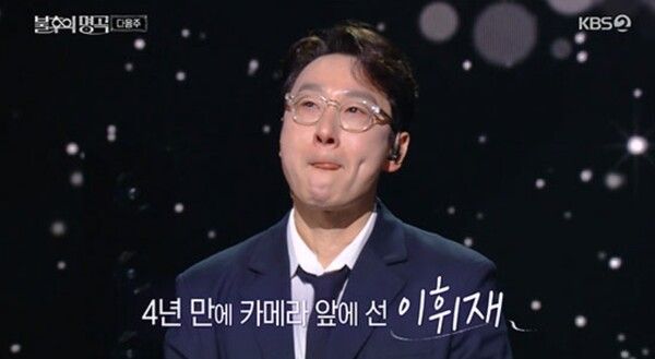지난 21일 방송된 KBS2 예능 프로그램 불후의 명곡 방송 말미에는 다음 주 예고편이 공개됐다. 2026 연예계 가왕전 특집으로 꾸며지는 이번 방송의 대미는 이휘재가 장식했다. 화이트 셔츠와 네이비 슈트 차림으로 무대에 선 그는 굳게 입술을 다문 채 긴장한 기색을 감추지 못했다.