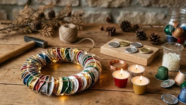 시즌별 장식물로도 활용할 수 있다. 특히 연말 시즌에는 압착된 캡슐 조각을 엮어 만드는 친환경 크리스마스 오너먼트로 변신시킬 수 있다. 캡슐을 평평하게 압착한 뒤 여러 개를 연결하여 리스를 만들거나, 캡슐 내부에 소형 LED 전구를 삽입하여 조명 장식을 제작할 수 있다. 이러한 방식은 알루미늄 소재 특유의 은은한 광택이 조명과 어우러져 고급스럽고 세련된 분위기를 연출하는 데 효과적이다.