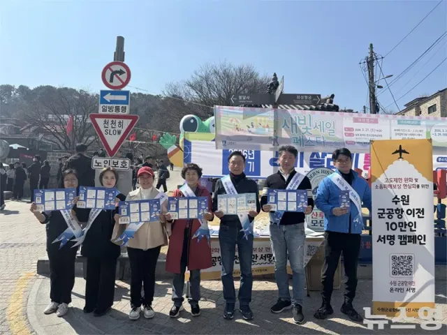 (뉴스영 이현정 기자) 수원 군공항 이전을 촉구하는 시민단체가 지역 소비 축제 현장에서 서명운동 홍보에 나섰다.