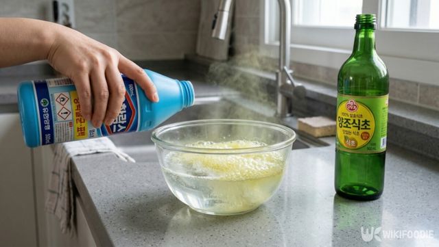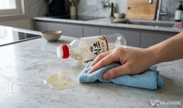 처음 식초를 묻혀 닦으면 반짝거리는 것처럼 보일 수 있으나, 시간이 지나면 광택이 죽고 거칠거칠한 질감으로 변하게 된다. 특히 식초를 뿌려둔 채 방치하면, 돌 내부로 산성 성분이 스며들어 지워지지 않는 얼룩을 남긴다. 인조 대리석 역시 강한 산성에 취약할 수 있어 각별한 주의가 필요하다. 이런 석재 표면을 닦을 때는 산성이나 알칼리성이 아닌 물에 중성 세제를 연하게 타서 닦는 것이 안전하다.