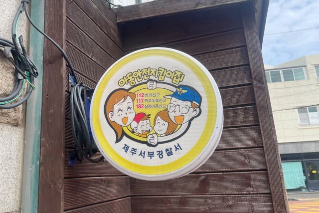 22일 오전 제주시 노형동의 한 문구점에 아동안전지킴이집 표지판이 설치돼 있다. 양유리기자