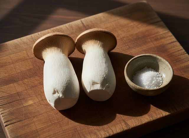 다음 단계는 밑간이다. 썰어놓은 버섯에 소금을 아주 소량만 뿌려 5분 정도 둔다. 이 과정에서 버섯 내부의 수분이 살짝 빠져나오면서 조직이 더 단단해지고, 구웠을 때 물컹하지 않고 탄력 있는 식감을 낼 수 있다. 밑간이 끝난 버섯은 키친타월로 가볍게 눌러 표면의 물기를 제거한다.