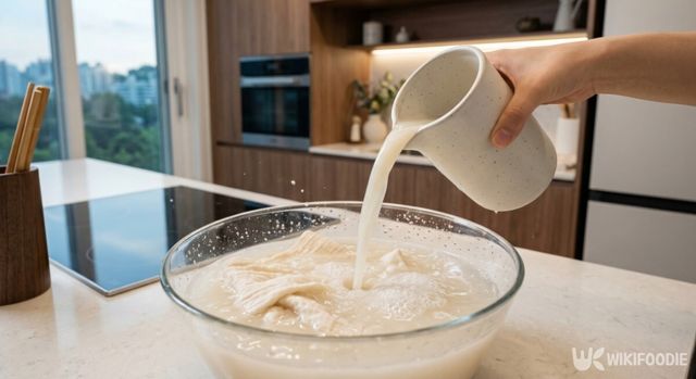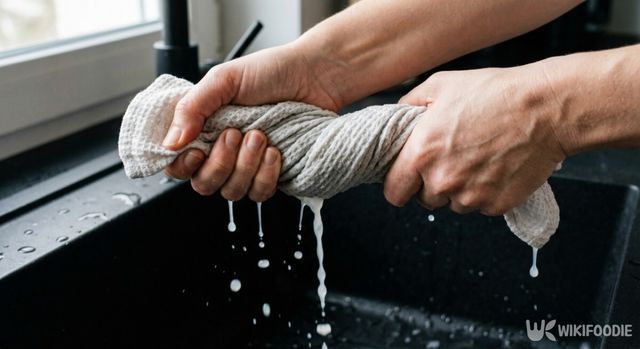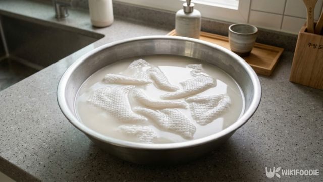 쌀뜨물로 행주 냄새를 제거하는 방법은 간단하다. 먼저 행주가 넉넉히 잠길 만한 용기에 쌀뜨물을 받아두고, 세탁한 행주를 그 안에 푹 담가두기만 하면 된다. 담가두는 시간은 하룻밤 정도가 적당하며, 대략 8시간 정도면 충분한 효과를 볼 수 있다. 이 과정을 거친 뒤 행주를 꺼내보면, 쌀뜨물의 색이 처음보다 더 탁해지거나 오염물이 빠져나온 것을 눈으로 확인할 수 있다.