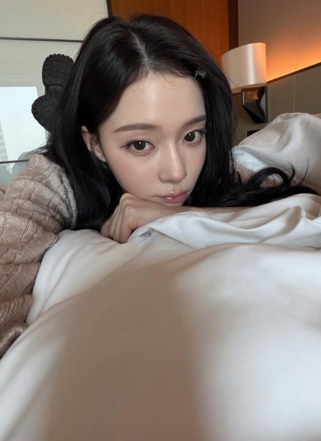 그룹 에스파 윈터는 22일 자신의 인스타그램에 침대 위에서 촬영한 셀카를 공개했다.