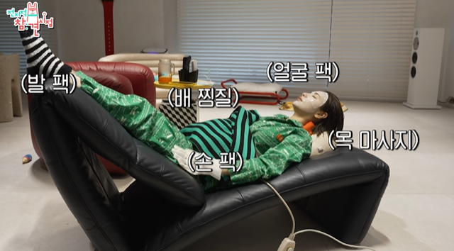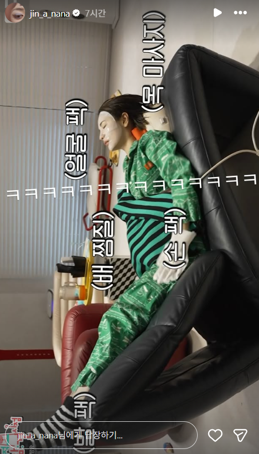 사진에는 나나가 자신의 집에서 얼굴에는 팩을 붙인채 소파에 누워서 목 마사지와 배찜질까지 하는 모습이 담겼다. 또 손과 발은 보습 기능이 있는 랩까지 감싼 자세로 웃음을 안겼다. 나나 본인도 자신의 모습을 보고 “ㅋㅋㅋ”라고 웃기다는 반응을 남겼다.