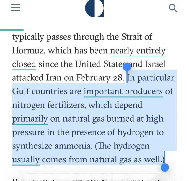 기름에 밥값 까지 오르는건데, 지금이 북반부 국가들 봄철이고 비료 수요 늘어날거 감안하면