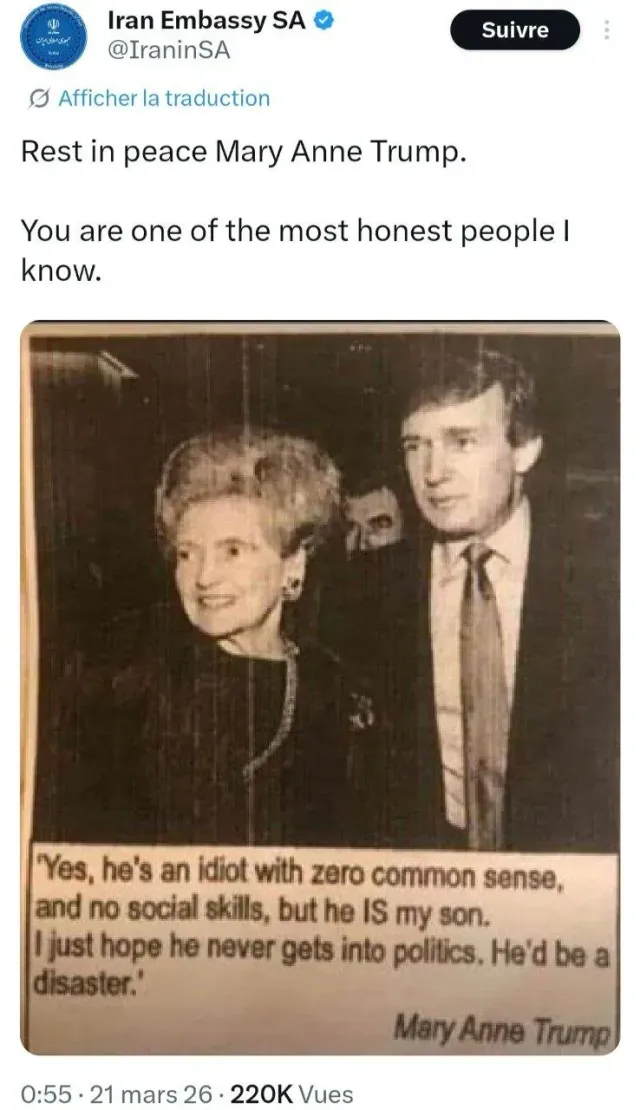 예전 한 잡지에서 트럼프 엄마인 메리 앤 트럼프가 트럼프에 대해 했던 발언