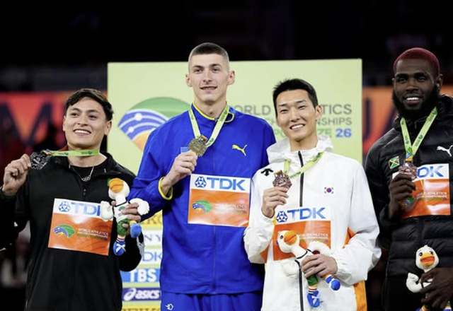 우상혁은 앞서 2022년 세르비아 베오그라드 대회에서 2m34의 기록으로 우승, 한국 육상 선수 최초로 세계실내선수권대회 시상대에 올랐다. 2024년 영국 글래스고 대회에서는 2m28의 기록으로 동메달을 획득했다. 이어 난징 대회 금메달, 이번 대회 동메달을 거머쥐었다.