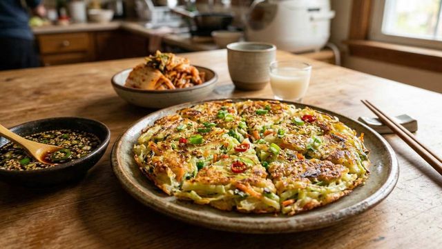 여기서 한 가지 요령은 팬의 뚜껑을 덮는 것이다. 뚜껑을 덮으면 열기가 안에서 맴돌며 윗면까지 골고루 익혀준다. 아랫면이 노릇하게 익으면 조심스럽게 뒤집어 반대쪽도 마찬가지로 천천히 구워준다. 앞뒤로 노란 빛깔이 돌 때까지 구워내면 보기에도 먹음직스러운 전이 완성된다.