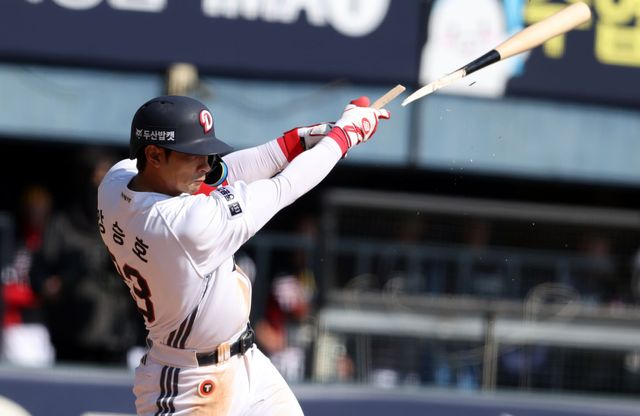 김민석이 우익수 직선타로 물러나 1아웃이 됐지만, 이번에는 박준순이 좌익수 키를 넘기는 2루타로 주자를 불러들였다. 다음 타자 강승호까지 좌중간 2루타를 때려내면서 두산은 6-0 리드를 잡았다.