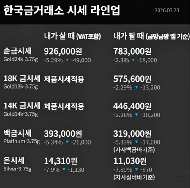 순금 : 매입가 92만 6000원 / 매도가 78만 3000원