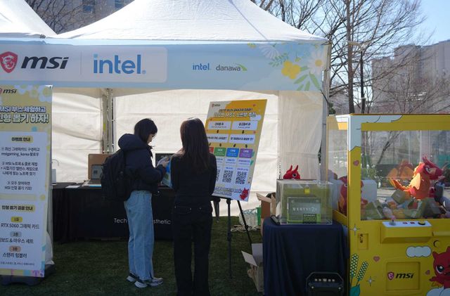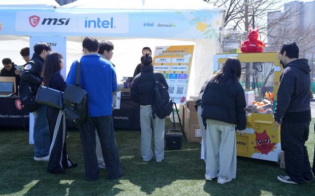 숭실대학교 캠퍼스 내 잔디광장에 펼쳐진 다나와 아카데미 2026 현장은 학생들의 발걸음으로 분주했다. 노트북과 그래픽카드, 주변기기와 데스크톱 하드웨어까지 여러 브랜드가 각자의 방식으로 존재감을 드러낸 가운데, MSI 부스 역시 또렷한 방향성을 갖고 학생들과 마주하고 있었다. 자사를 대표하는 제품을 선보이는 데 그치지 않고, 직접 체험하고 이벤트에 참여하며 브랜드를 기억하게 만드는 자리로 활용코자 다양한 아이디어가 반영된 부스였다.