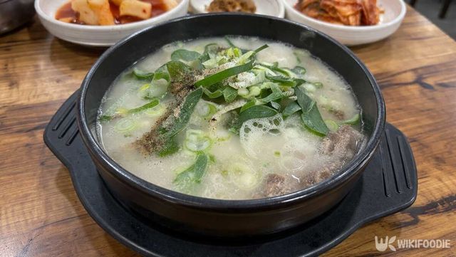 곰탕은 뚝배기에 담겨 제공되며, 마지막까지 온도가 유지되는 점이 특징이다. 국물은 뽀얗고 진하게 우러나 있으며 잡내 없이 깔끔하게 떨어진다. 소면이 함께 들어가 있어 한 끼 식사로 충분한 양을 채운다.