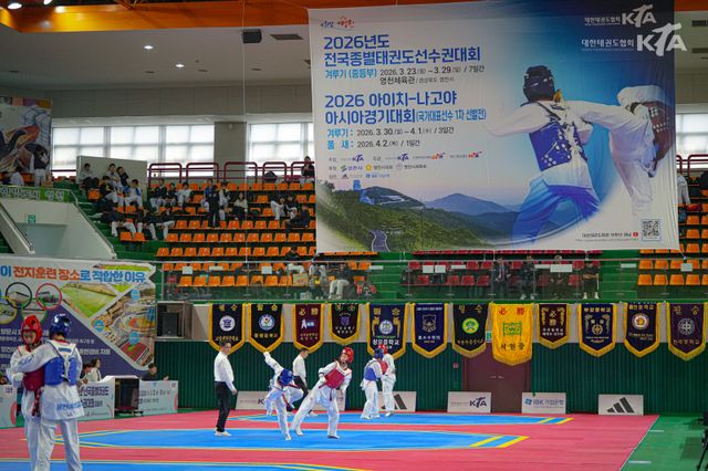 대한태권도협회(회장 양진방)는 지난 23일 경상북도 영천체육관에서 '2026년도 전국종별태권도선수권대회(겨루기 중등부) 및 2026 아이치-나고야 아시아경기대회 파견 국가대표 1차 선발전'을 개막했고, 4월 2일까지 일정을 이어간다.