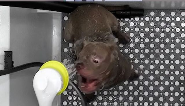 광배는 샤워기를 틀자마자 물줄기를 향해 달려들며 거칠게 반응한다. 단순히 물을 마시는 수준을 넘어 입으로 물줄기를 물어뜯으려는 행동을 보이며, 급기야 호스를 잡고 있던 보호자에게까지 입질을 시도해 긴장감을 높인다.