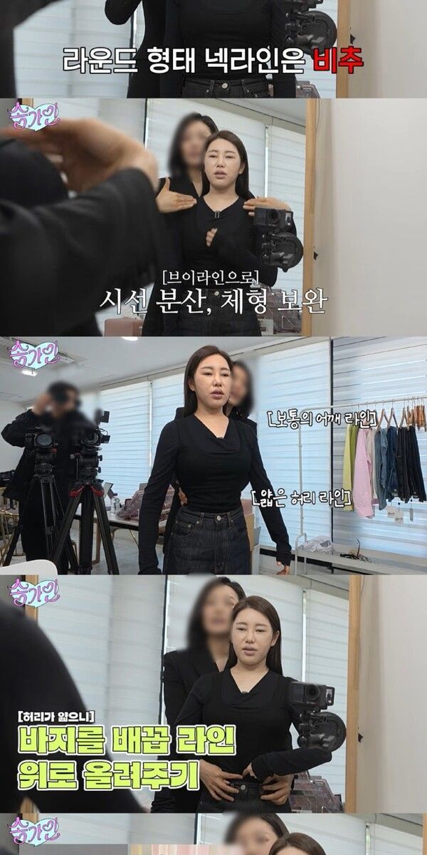 본격적으로 진행된 체형 진단에서 전문가는 송가인의 신체 특징을 면밀히 분석했다. 전문가는 송가인이 시선이 상체로 먼저 향하는 체형임을 짚어내며, 목을 가리는 목폴라나 라운드 형태의 넥라인은 가급적 피하는 것이 좋다고 조언했다. 송가인 역시 평소 목폴라 같은 의상은 절대 입지 않는다며 전문가의 분석에 적극 공감했다.