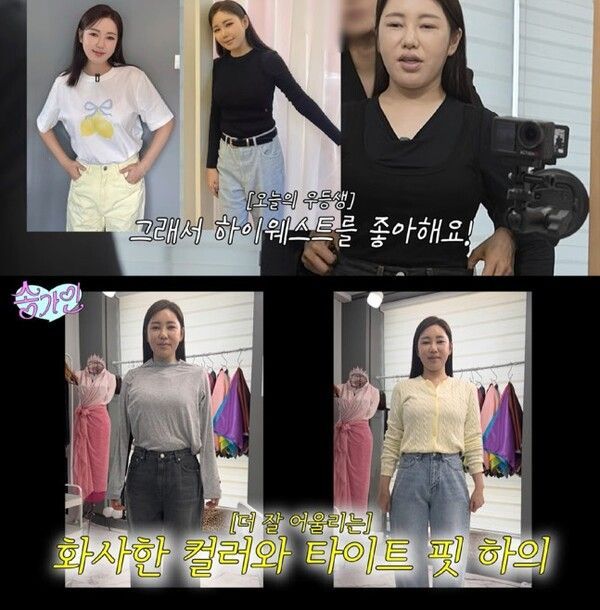 대신 전문가는 브이라인 형태의 상의를 통해 시선을 분산시키고 체형을 보완할 것을 추천했다. 또한 송가인의 어깨 라인이 잘 발달해 있고 허리가 매우 가늘다는 점을 장점으로 꼽으며, 바지를 배꼽 위로 올려 입는 하이웨이스트 스타일이 베스트라고 덧붙였다. 송가인은 평소에도 하이웨이스트를 즐겨 입는다며 자신의 스타일 취향이 과학적인 분석과 일치함에 즐거워했다.