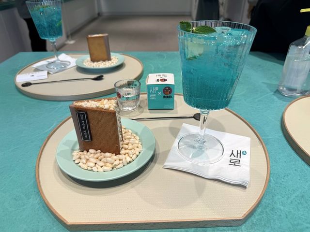 새로술상은 새로 칵테일과 '카페 아우프글렛' 협업 디저트, 새로잔 굿즈로 구성돼 있다. = 이인영 기자