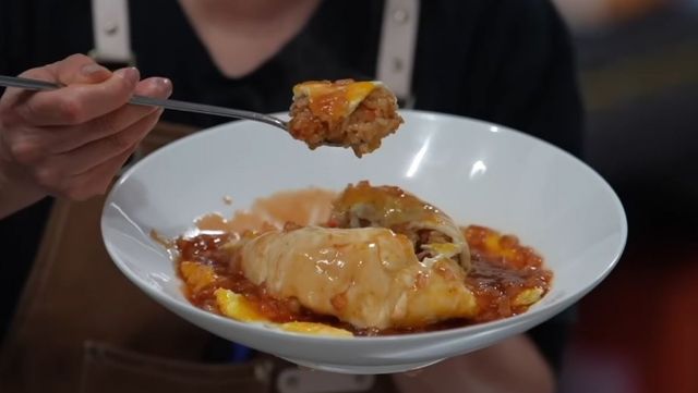 오므라이스의 완성도를 높이는 전용 소스도 직접 만든다. 다진 양파를 달달 볶다가 돈가스 소스 6큰술, 케첩 3큰술, 물 9큰술, 굴소스 반 큰술을 넣어 바글바글 끓이면 된다. 마지막으로 계란 4개를 풀어 팬에 80% 정도만 익힌 뒤 밥 위에 올리고 소스를 곁들인다. 기버터를 사용해 볶아낸 밥과 계란은 일반 식용유를 썼을 때와 차원이 다른 고소하고 진한 풍미를 선사하며 요리를 마무리한다.