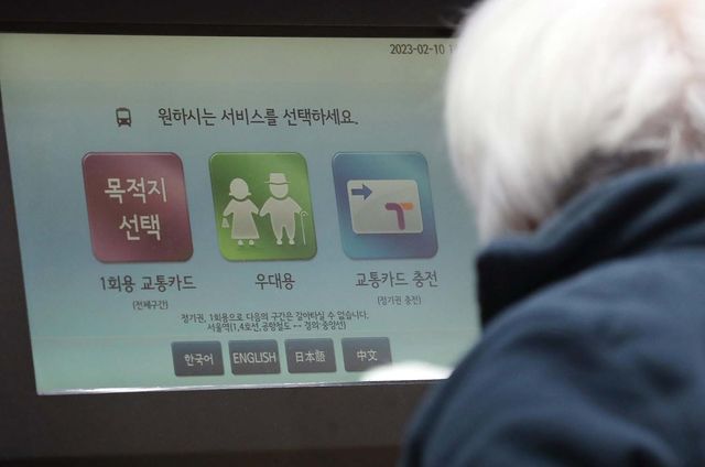 서울 지하철 2호선 삼성역에서 어르신이 우대용 교통카드를 발권하고 있다. / 뉴스1 자료사진
