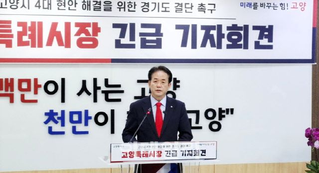이동환 경기 고양특례시장은 24일 오전 시청 대회의실에서 기자회견을 열고 “경기도는 한시가 바쁜 고양의 현안을 반려하고, 반려하고 또 반려했다. 도와줄 수 없으면 비켜서기라도 하면 됐다”며 “직접 도청을 찾아 현안을 논의하기로 했는데 도지사는 나갔다”고 밝혔다. 이어 “김 지사는 경기북부의 시대를 열겠다고 했는데 그 약속은 어디로 간 건가”라고 지적했다.