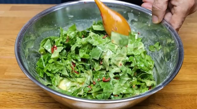 여기에 반죽의 농도는 물 반 컵(100ml)을 넣어 조절하며, 국자로 떴을 때 쭉쭉 흘러내릴 정도의 묽은 상태를 유지해야 상추 본연의 맛을 가리지 않는 얇은 피의 전을 부칠 수 있다.