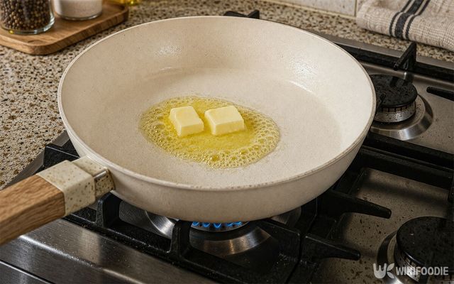 2. 팬에 버터 1큰술을 넣고 중간보다 약한 불에서 천천히 녹인다.