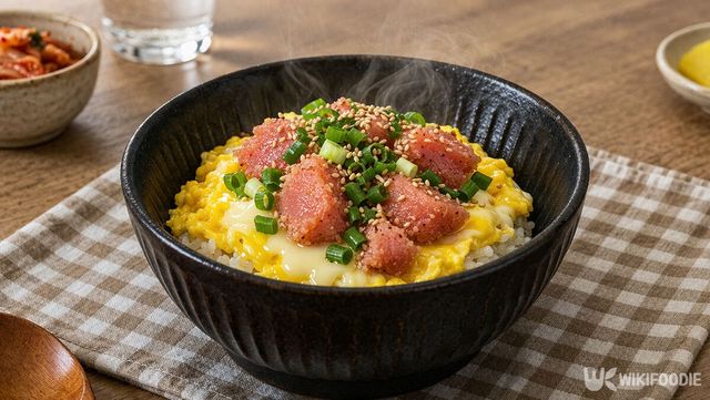계란물 가장자리가 익기 시작하면 숟가락이나 조리도구로 부드럽게 저어 스크램블을 만든다. 핵심은 완전히 익히지 않고 노른자가 촉촉하게 살아있는 반숙 상태에서 불을 끄는 것이다. 너무 오래 익히면 스크램블이 퍽퍽해질 수 있으니 주의한다. 부드럽게 익은 버터 스크램블은 밥 위에서 크림처럼 퍼지며 전체적인 맛을 부드럽게 감싸준다.