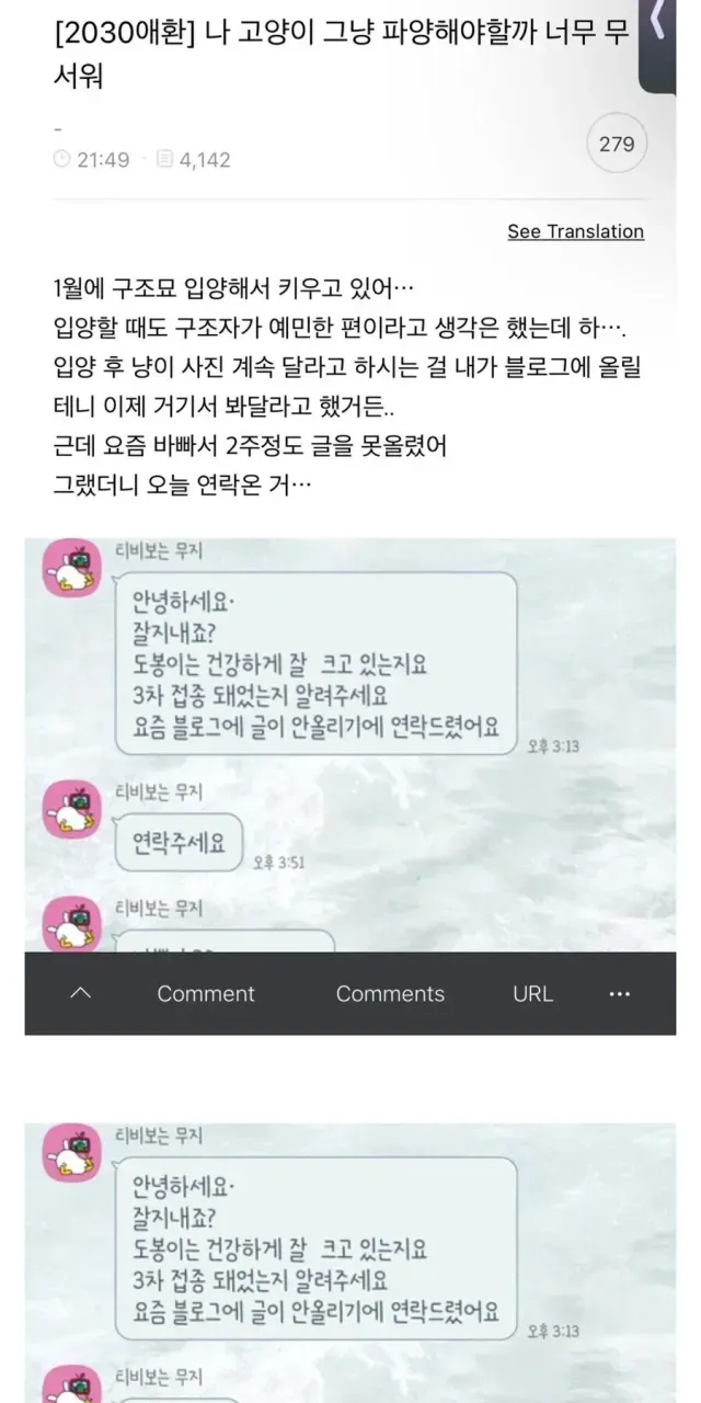 고양이 파양할까 고민하는 여자