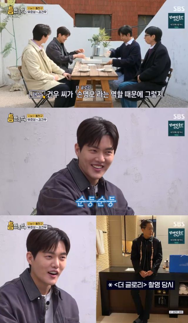 유재석은 김건우를 보면서 "건우 씨는 처음 만난다. '더 글로리' 손명오 역할 때문에 그렇지, 실제로는 인상이 엄청 선하다"고 했다.