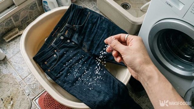 세탁 전 40도에서 50도 사이의 따뜻한 물을 준비하고, 여기에 청바지를 담근 뒤 소금 10g 정도를 넣어주면 된다. 그 상태로 5분에서 10분 정도 두면 청바지 색은 유지되고 오염만 빠져나온다.