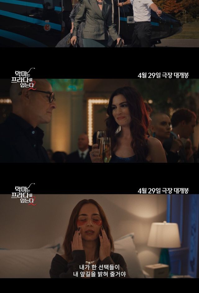 이어 “메릴 스트립”, “앤 해서웨이”, “에밀리 블런트”, “스탠리 투치”까지 전설적인 배우들의 이름이 화면을 가득 채우며 화려한 귀환을 알린다. 블루카펫 위에 강렬한 붉은 드레스를 입고 등장한 ‘미란다’를 비롯해 완전히 달라진 위상으로 돌아온 ‘앤드리아’, ‘에밀리’, ‘나이젤’까지 새로운 시작이 예고된다. 이번 작품에서는 치열한 패션업계에서 살아남기 위한 이들의 열정이 다시 한 번 펼쳐질 예정이다. “내가 한 선택들이 내 앞길을 밝혀 줄거야”라는 ‘에밀리’의 대사는 20년의 시간 동안 이들에게 어떤 변화가 있었는지 궁금증을 높인다.