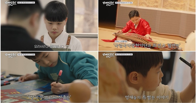이 밖에도 피아노로 유럽 무대를 누비는 음악 영재, 국립국악관현악단과 협연한 국악 영재, 9세에 루브르 무대에 진출한 미술 영재까지 각 분야에서 활약하는 아이들의 이야기가 공개된다.