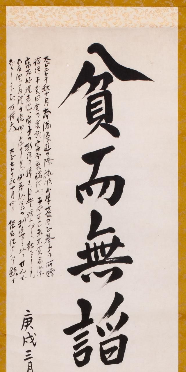 유묵은 ‘가난해도 아첨하지 않고, 부유해도 교만하지 않는다’라는 논어(論語) 학이(學而)편 내용을 인용해 안중근 의사가 쓴 글로, 도쿠토미 로카는 이 유묵 왼편 상단에 ‘안중근씨가 이 말을 택한 것은 자연스러운 일이라고 할 수 있다. 그가 빈락부예(貧樂富禮)의 경지에 이르렀다면 이토 히로부미의 자객으로 만족하지는 않았을텐데 애석한 일이다’고 적었다.