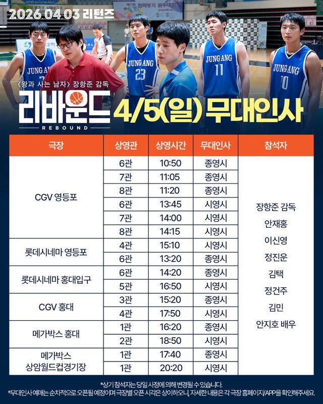 오는 4월 3일 재개봉을 앞둔 ‘리바운드’는 예매 오픈과 동시에 무대인사가 전석 매진되며 높은 관심을 입증했다. 3년 만의 재개봉 소식에 기존 관객은 물론 새 관객까지 유입되며 흥행 기대감을 높이고 있다.