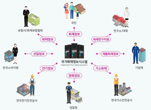 | ▲ 국가화재정보시스템 관계도(사진출처 : 국가화재정보시템(NFDS)) |