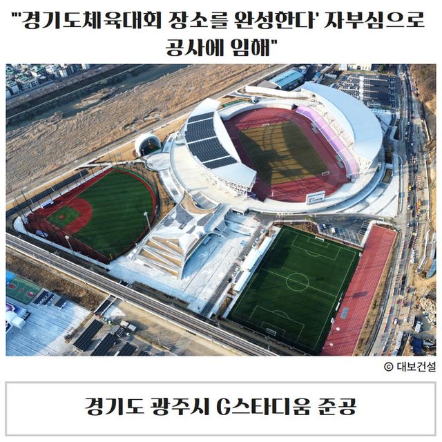 대보그룹 건설 계열사 대보건설이 경기 광주시 G스타디움을 완공하고 전경을 공개했다.