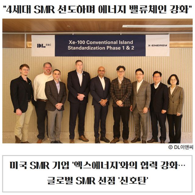 DL이앤씨(375500)가 미국 소형모듈원전(이하 SMR) 선도 기업 엑스에너지와의 'SMR 표준화 설계' 계약을 체결했다. 지난 2023년부터 추진한 협업 내용을 구체화한 것으로, 해당 설계를 내년 상반기까지 완료할 계획이다. 계약 금액은 약 1000만달러(약 150억원)다.